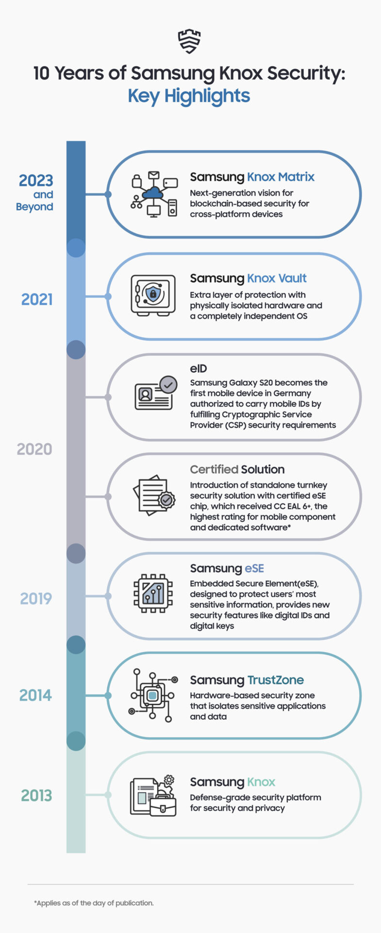 To je desetletje vodilne mobilne zaščite za uporabnike po vsem svetu, v katerem se je Samsung Knox razvil v celovito varnostno platformo, ki je sinonim za zaščito milijard potrošnikov in podjetij. Sedaj pa se Samsung s Knox Matrix loteva naslednje meje varnosti naprav.