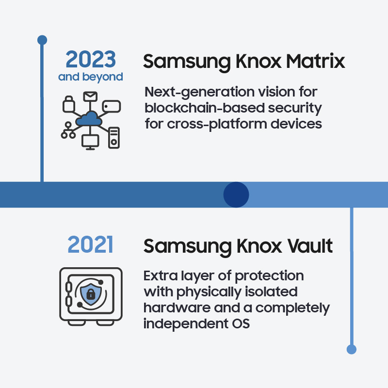 Ker postajajo naprave vse bolj povezane, mora Samsung poskrbeti tudi za to, da njihova uporaba ne bo še bolj zapletena. Z Knox Matrix si prizadevamo, da bi uporabnikom poleg zaščite ponudili tudi preglednost in izbiro. Uporabniki morajo biti varni, saj se lahko o svojih napravah odločajo na podlagi informacij, tako da so lahko zaščiteni brez težav. Predvidevamo, da bo Knox Matrix uporabnike opozoril na potencialno nevarne situacije, kot je uporaba stare vdelane programske opreme in jim ponudil predloge za morebitne naslednje korake.