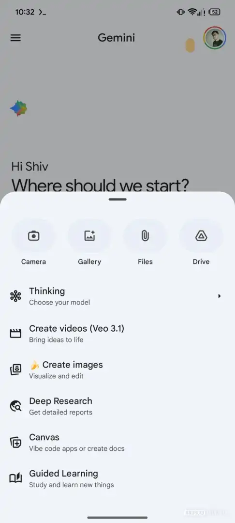 Če pogledamo spodnje slike, je mogoče hitro opaziti pomembno spremembo smeri: meni z orodji v Gemini, kjer so trenutno zbrane funkcije, kot sta generiranje slik in videov, ne bo več prikazan kot ločen zavihek, temveč bo prešel v spustni meni, ki se odpre, ko na dnu zaslona pritisnemo gumb +.