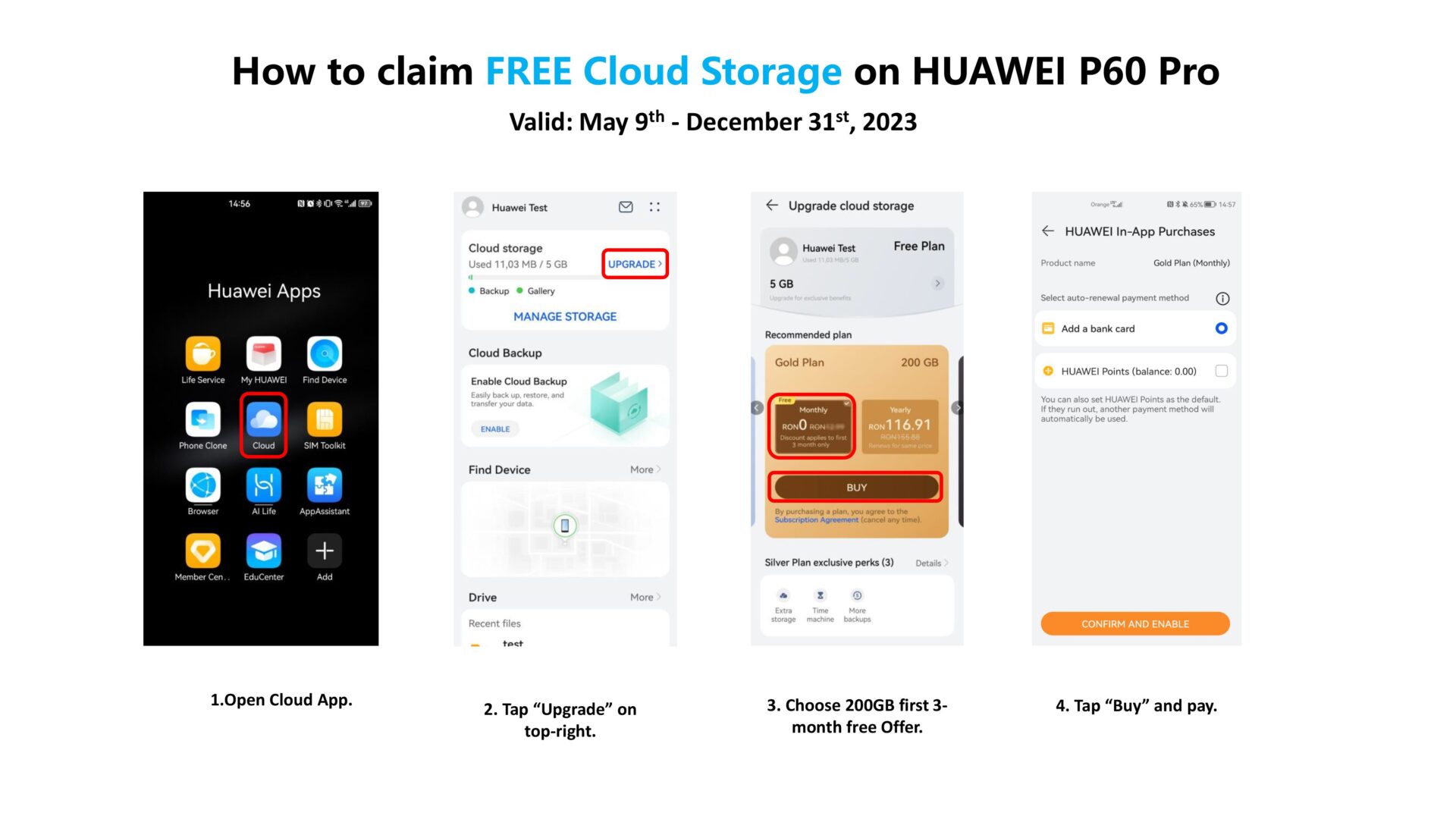 Poleg šestmesečne naročnine na Tinder Plus Huawei novim uporabnikom velikodušno dodelil tudi 200 GB brezplačnega prostora za hranjenje datotek v oblaku za obdobje treh mesecev. Aplikacija Huawei Claud s prijaznim in preglednim uporabniškim vmesnikom, ki omogoča nemoteno navigacijo in preprosto dostop do razpoložljivih funkcij, je že nameščena na pametnih telefonih Huawei.