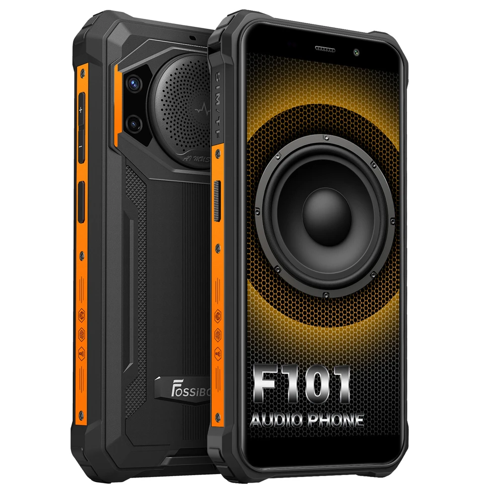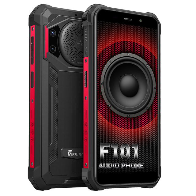 FOSSiBOT F101 je robusten telefon, ki je opremljen z vsemi potrebnimi certifikati IP68/IP69/MIL-STD-810G, ki zagotavljajo odpornost na vodo, prah in padce. Na zadnji strani naprave se nahaja velika okrogla rešetka, ki varuje velik zvočnik s prostornino 11,5 cm3, največjo močjo 3,5 W in največjo izhodno močjo 123 decibelov, kar je najvišja vrednost, ki jo je kdajkoli dosegel pametni telefon.