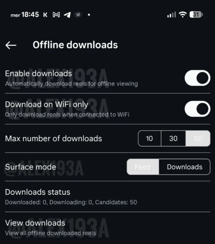 To pomeni, da bi si uporabniki lahko vsebine vnaprej prenesli na svojo napravo in jih gledali tudi takrat, ko nimajo signala ali dostopa do spleta. Med možnostmi naj bi bile prenos vsebin samo prek omrežja Wi-Fi, izbira števila Reelsov za prednalaganje ter prikaz prenesenih vsebin v glavnem viru ali v posebni mapi za prenose.