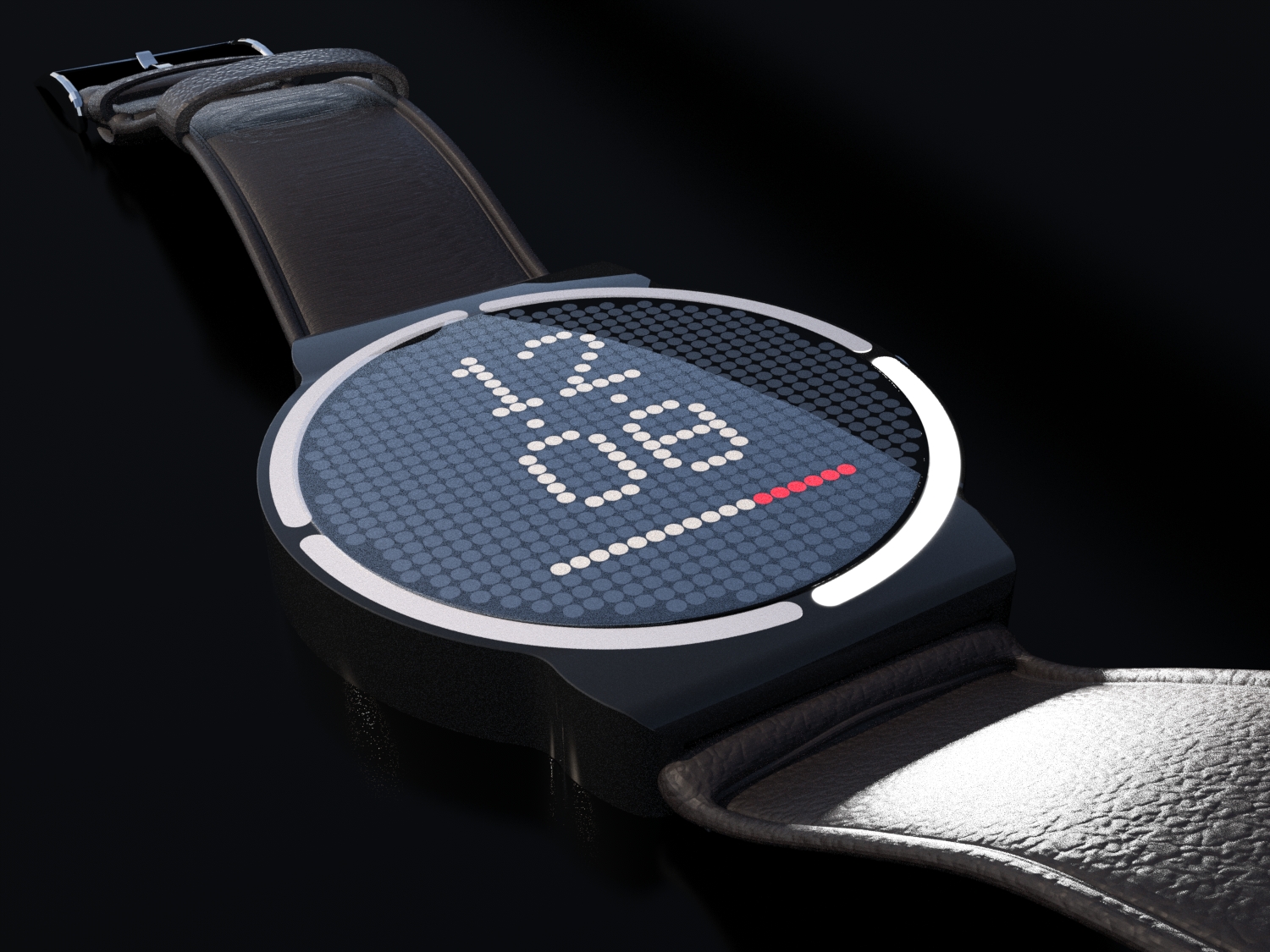 "Imagine a quasi-analogue watch. A 1mm RGB led matrix and four circular LEDs with a crystal on top. Nothing more, nothing less." pic.twitter.com/9569b7zBt5