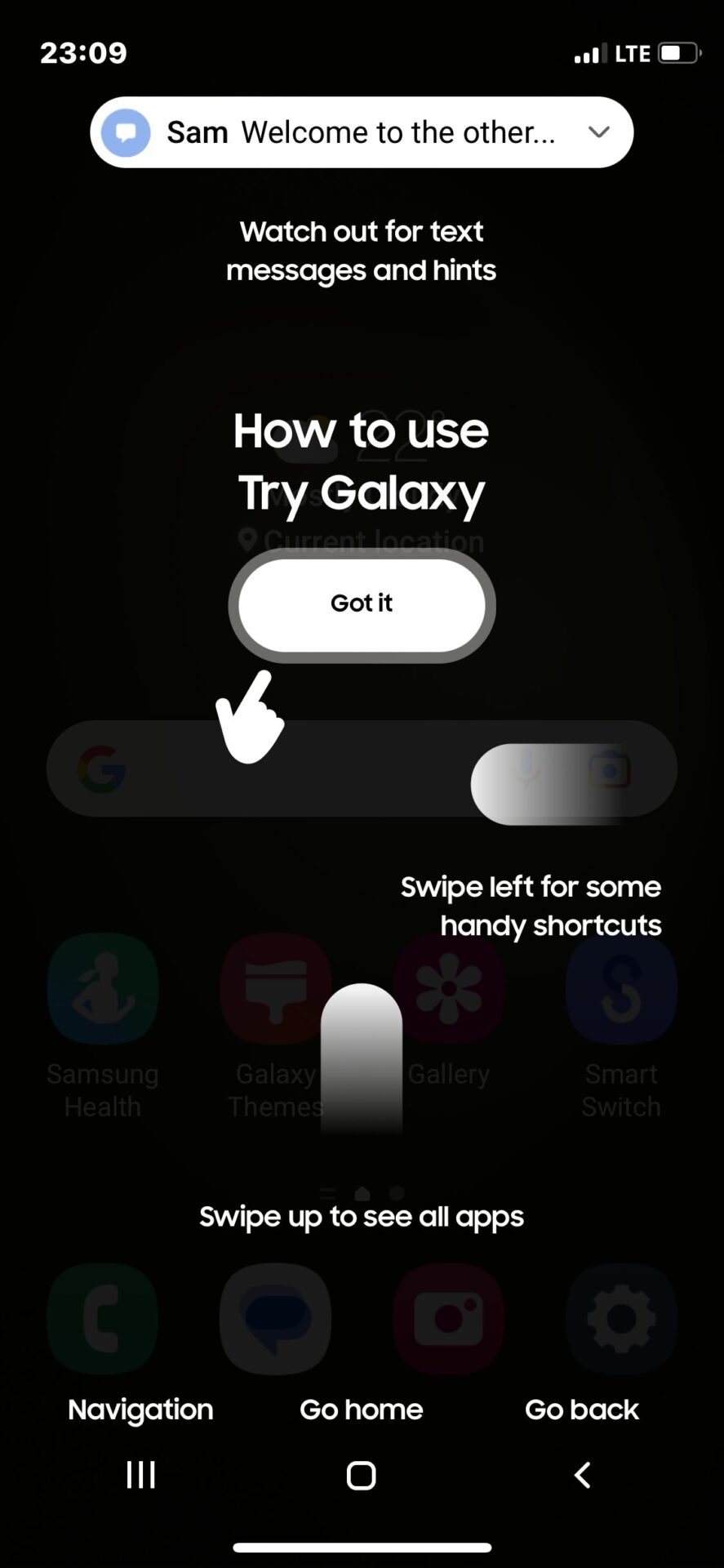 Z obiskom spletnega mesta Try Galaxy lahko lastniki iPhona “namestijo” spletno aplikacijo in jo dodajo na domači zaslon svojega telefona. Ko to storijo, se z enostavnim zagonom spletne aplikacije vmesnik telefona iPhone spremeni v vmesnik telefona Samsung Galaxy. Uporabnikom je na voljo kratki vodnik, ki jih nauči, kako krmariti po vmesniku telefona s sistemom Android, nato pa lahko sami preizkusijo storitve.