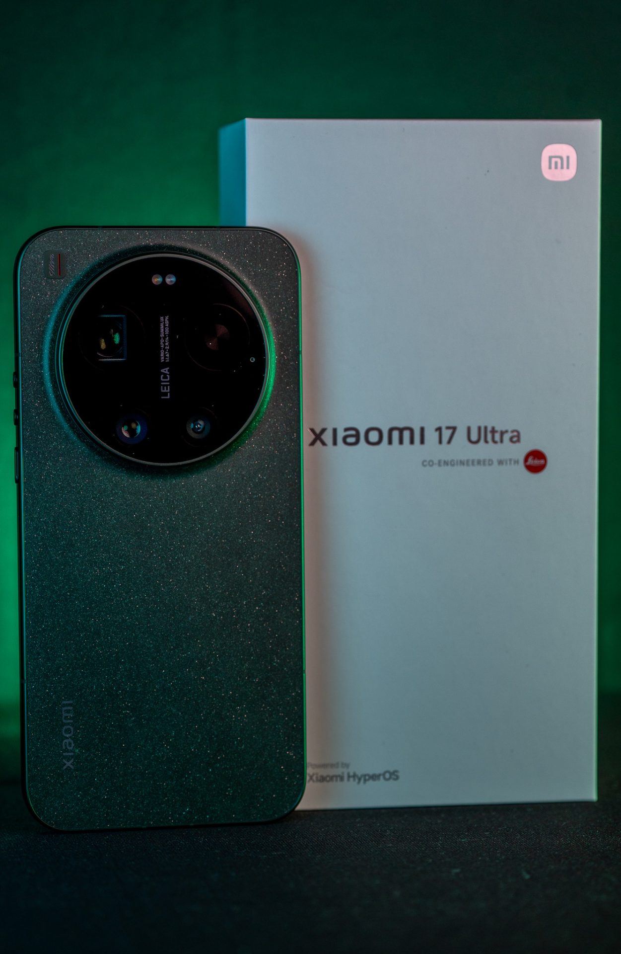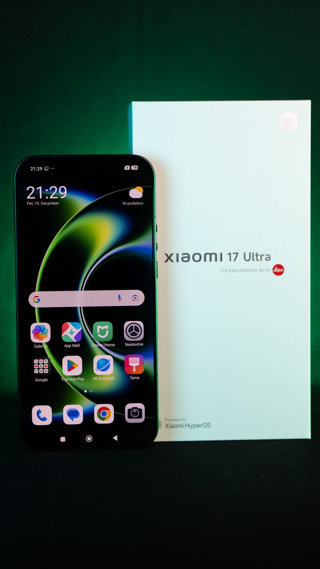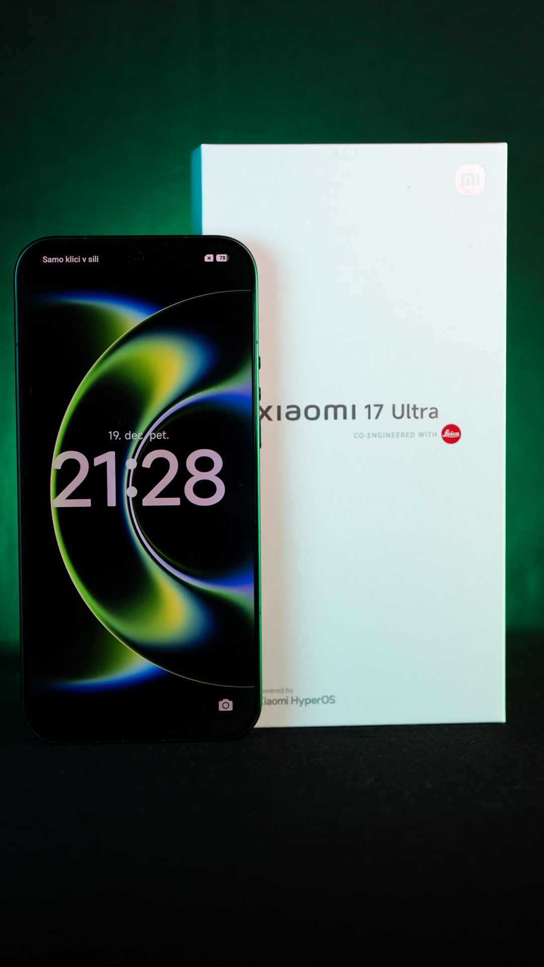 Priznam … Ko ti na mizo pristane še en “Ultra” telefon, si najprej misliš: okej, spet bomo poslušali o megapikslih, umetni inteligenci in “revolucionarnih” nadgradnjah. Ampak potem odpreš škatlo … in iz nje zasije Xiaomi 17 Ultra v bleščeče zeleni barvi. Ne takšni “dolgočasni” zeleni, ampak taki, ki te skoraj oslepi, ko ga zadene prvi žarek sonca.
