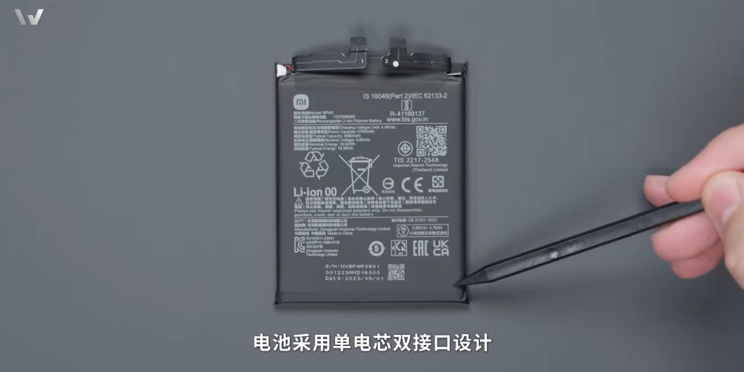 Ob razstavljanju naprave naletimo na napredni sistem za brezžično polnjenje s kapaciteto 50W. Pod njim je nameščena dvokomponentna baterija ATL s kapaciteto 4.880 mAh, ki jo upravlja Xiaomijev lastni čip Surge G1. Sistem za odvajanje toplote, sestavljen iz parne komore in bakrenih toplotnih cevi, pa zagotavlja učinkovito hlajenje.
